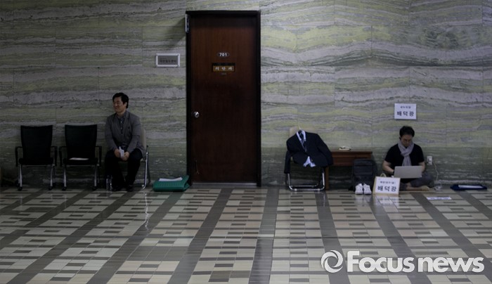 (서울=포커스뉴스) 20대 국회 임기가 시작된 30일 오전 서울 여의도 국회 의안과 앞에서 배덕광 새누리당 의원, 박정 더불어민주당 의원의 보좌관들이 각각 1, 2호 법안 접수를 위해 대기하고 있다.