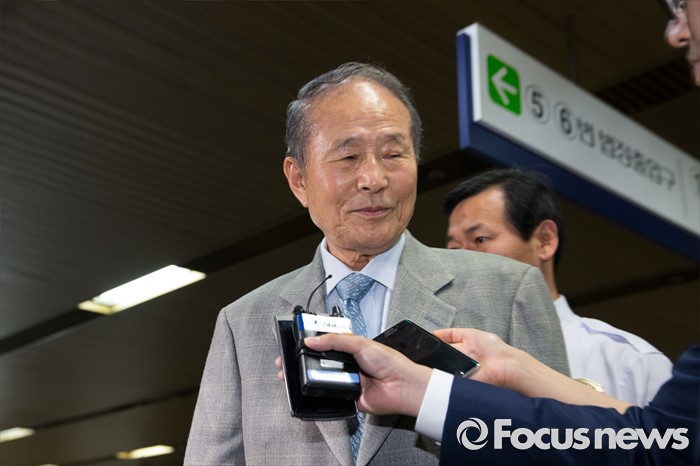 (서울=포커스뉴스) 포스코 비리에 연루된 혐의를 받고 있는 이상득 전 의원이 1차 공판에 출석하기 위해 30일 오전 서울 서초구 서울중앙지방법원으로 들어서고 있다.