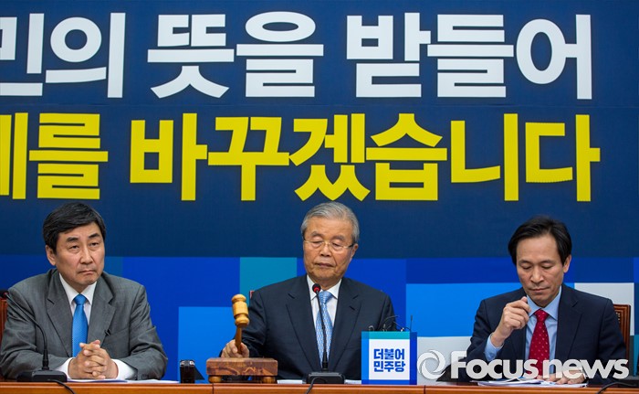 (서울=포커스뉴스) 김종인(가운데) 더불어민주당 비상대책위 대표가 30일 오전 서울 여의도 국회에서 열린 비상대책위원회의에 참석해 의사봉을 두드리고 있다.