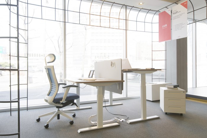 플롯은 사용자 신체와 업무조건을 고려한 높이조절 책상 시리즈로, 영어 fit(맞추다)과 lot(공간)의 합성어다. 신체에 맞춘 최적화된 업무공간이 주는 가치라는 브랜드 의미를 내포하고 있다.