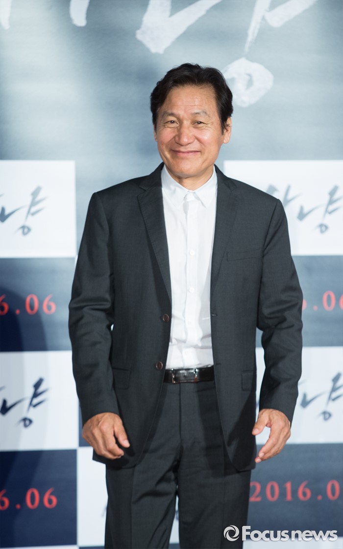 (서울=포커스뉴스) 30일 오전 서울 광진구 건대입구 롯데시네마에서 열린 영화 '사냥' 제작보고회에 참석한 배우 안성기가 포토타임을 갖고 있다.