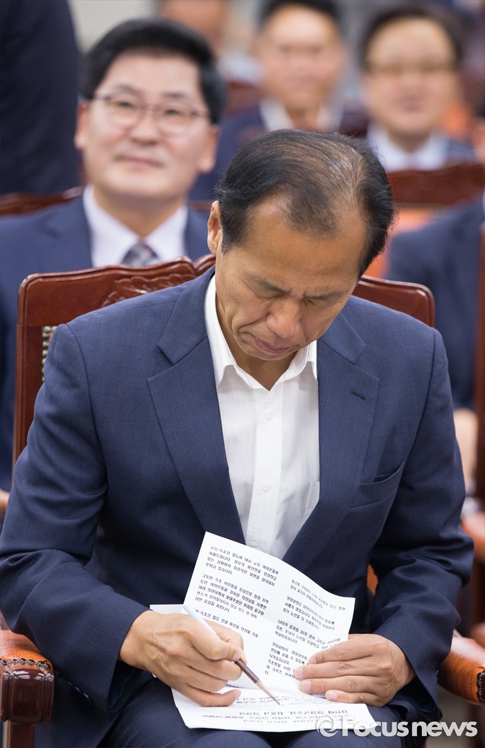 (세종=포커스뉴스) 30일 오전 세종시 정부세종청사 해양수산부 대회의실에서 열린 해양심층수 융·복합 산업 육성을 위한 해양수산부와 강원도 간 업무협약 체결식에 참석한 최문순 강원지사가 메모를 하고 있다.