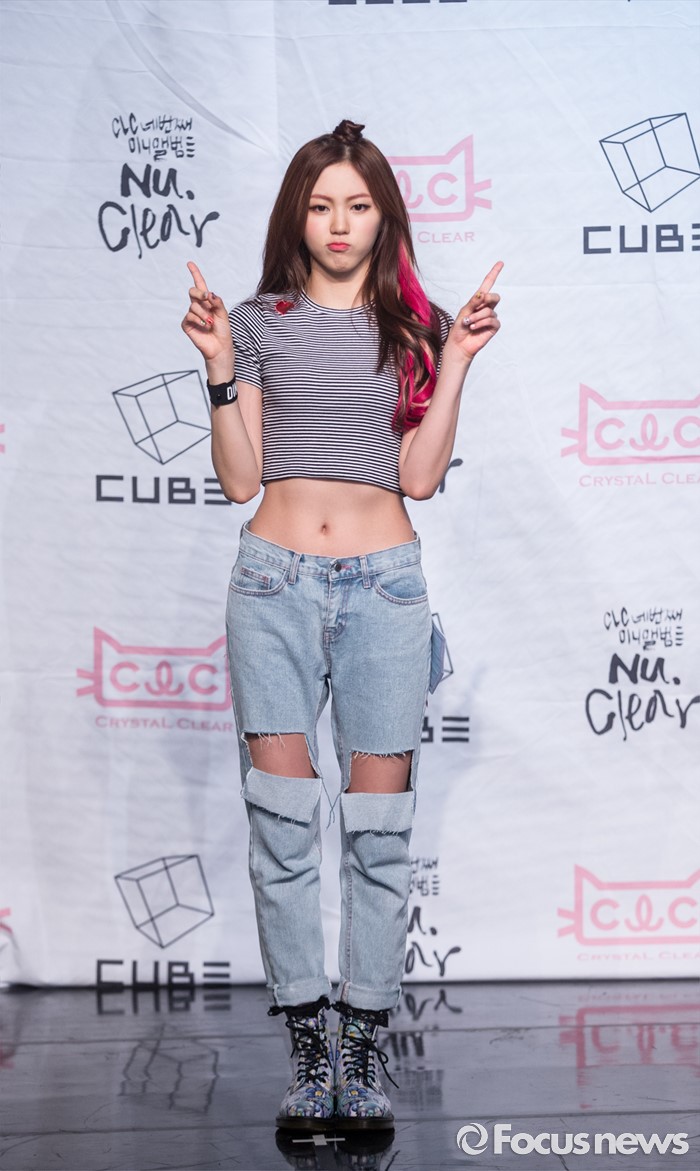 (서울=포커스뉴스) 30일 오후 서울 마포구 롯데카드 아트센터에서 열린 걸그룹CLC의 미니앨범 '뉴 클리어(NU.CLEAR) ' 발표 쇼케이스에 참석한 멤버 권은빈이 포토타임을 갖고 있다.