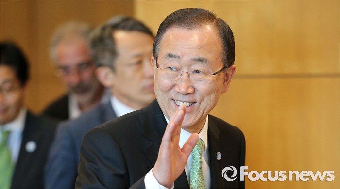 (인천공항=포커스뉴스) 반기문 유엔 사무총장이 30일 오후 인천국제공항에서 출국에 앞서 취재진에 손을 들어 인사하고 있다.