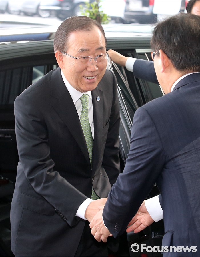 | △ 영접 받는 반기문 유엔 사무총장 |