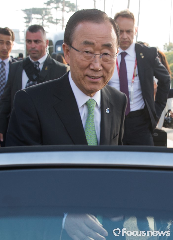(인천공항=포커스뉴스) 방한일정을 마친 반기문 유엔 사무총장이 30일 오후 인천국제공항 KTX역에 내려 출국장으로 이동하기 위해 차량에 올라타고 있다. 반 총장은 "방한 일정과 언론에 보도된 내용, 방한 중 활동과 관련해 오해가 없길 바란다"고 밝혔다.