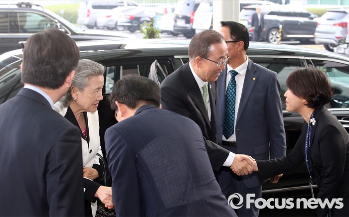 (인천공항=포커스뉴스) 방한 일정을 마친 반기문 유엔사무총장이 30일 오후 출국을 위해 인천국제공항에 도착, 관계자들의 영접을 받고 있다.
