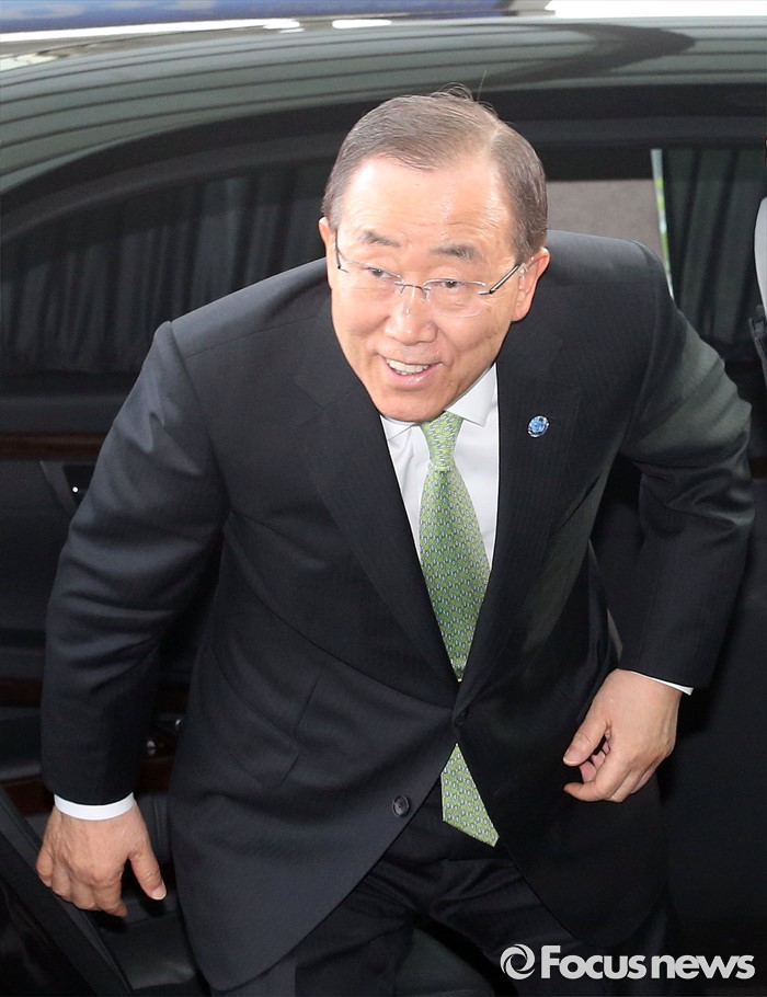 (인천공항=포커스뉴스) 방한 일정을 마친 반기문 유엔 사무총장이 30일 오후 출국을 위해 인천국제공항에 도착, 차량에서 내리고 있다.