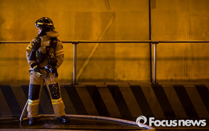 소방당국과 경찰은 정확한 화재 원인을 조사중이다.지난 18일 오후 서울 용산구 남산2호터널에서 재난대응 안전한국훈련-터널내 화재사고 대비 훈련이 진행되고 있다. 2016.05.18 오장환 기자