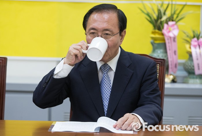 (서울=포커스뉴스) 노회찬 정의당 원내대표가 31일 오전 국회에서 열린 정운찬 동반성장연구소 이사장 초청 특별강연에서 물을 마시고 있다. 이날 강연은 정의당의 '성역없이 듣겠습니다'란 이름의 의원단 연속 워크숍 '광폭 경청'의 일환으로 열렸다. 정 이사장은 '제20대 국회와 경제민주화'를 주제로 강연했다