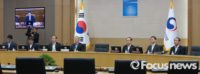 (세종=포커스뉴스) 31일 오전 세종시 정부세종청사 국무회의장에서 서울-세종 영상회의로 열린 국무회의에 참석한 국무위원들이 황교안 국무총리의 발언을 경청하고 있다.