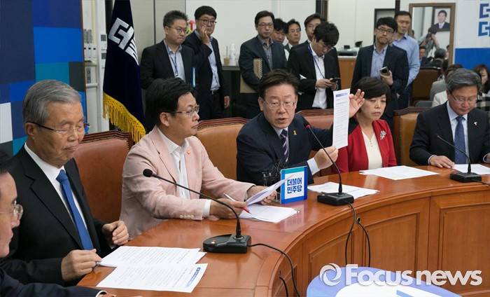 (서울=포커스뉴스) 이재명(오른쪽 세번째) 성남시장이 31일 오전 서울 여의도 국회에서 열린 지방재정 개편 관련 김종인 더불어민주당 비대위 대표 등과의 면담에 참석해 발언하고 있다.