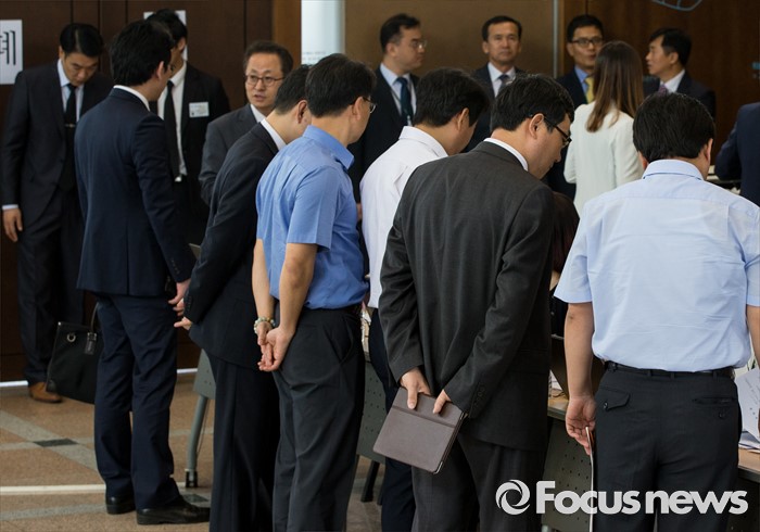 (서울=포커스뉴스) 31일 오전 서울 종로구 현대그룹 본사에서 열린 현대상선 사채권자 집회에 사채권자 및 관계자들이 입장하고 있다. 사채권자 집회는 일정 금액 이상 사채권자들의 동의를 얻어 해당 사채의 조건을 일괄 변경하는 상법 절차다.