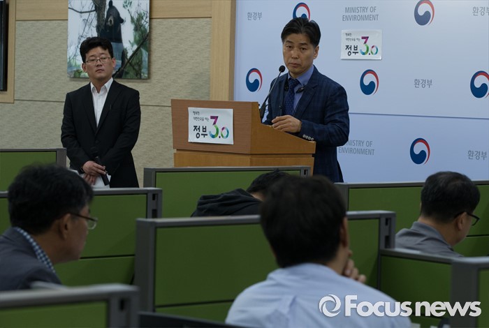 (세종=포커스뉴스) 서흥원 환경부 환경보건정책과장이 31일 오전 세종시 정부세종청사 환경부 기자실에서 가습기살균제 피해 지원 지자체와 함께 한다는 브리핑을 하고 있다.