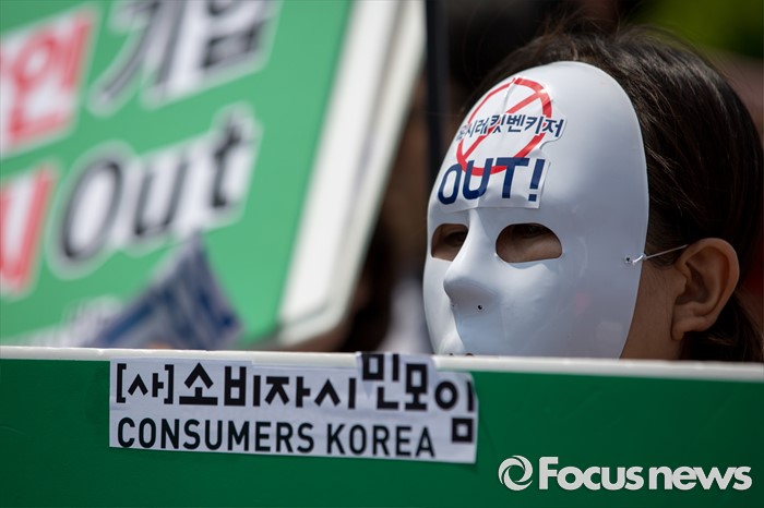 (서울=포커스뉴스) 31일 오후 서울 여의도 국회 앞에서 경제정의실천시민연합 관계자들이 옥시 제품 불매 및 옥시 예방법 제정을 촉구하는 기자회견을 하고 있다.