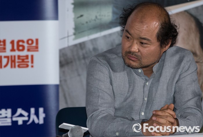 (서울=포커스뉴스) 31일 오후 서울 성동구 왕십리 CGV에서 열린 영화 ' 특별수사 : 사형수의 편지' 언론시사회에 참석한 배우 김상호가 취재진에게 질문을 받고 있다.