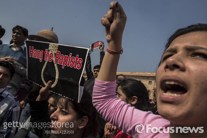자그마티 상완 인도 민주 여성연합 대표는 "우타르프라데시주에서 법질서가 완전히 무너졌다"며 "범죄자들이 정부와 경찰을 전혀 두려워하지 않고 있다"고 말했다.2012년 인도 뉴델리에서 여성들이 강간범을 강력하게 처벌하라는 규탄 시위를 벌이고 있다. 이런 노력에도 불구하고 인도에서는 끔찍한 성범죄가 끊이지 않고 있다. (Photo by Daniel Berehulak/Getty Images)2016.05.31 ⓒ게티이미지/이매진스 인도 뉴델리에서 2012년 12월 16일 23세 여성이 버스를 타고 이동하다 집단 성폭행 당했다. 이에 대해 인도 정부가 미온적으로 반응하자 여성 단체는 규탄 집회를 열었다. (Photo by Daniel Berehulak/Getty Images)2016.05.31 ⓒ게티이미지/이매진스