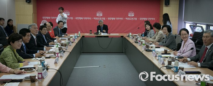 (서울=포커스뉴스) 1일 오전 서울 영등포구 새누리당 여의도연구원에서 비례대표 초선 의원들이 정규재 한국경제 주필을 초청해 연구모임을 하고 있다.