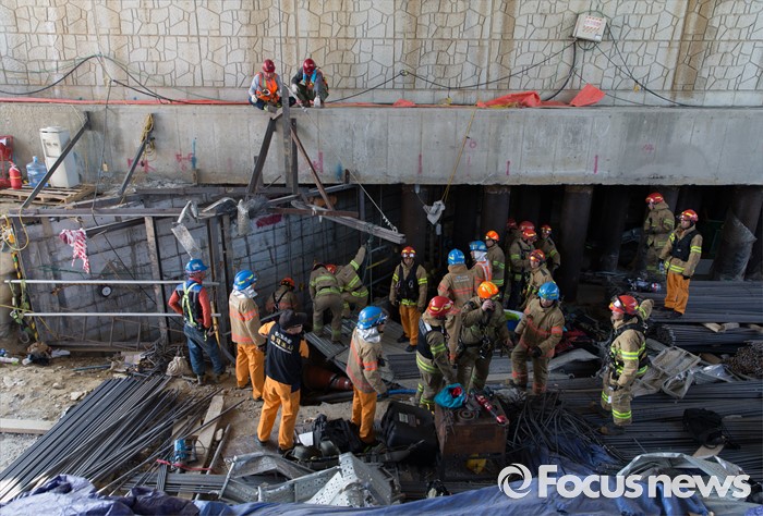 (남양주=포커스뉴스) 1일 오전 7시 20분께 경기 남양주시 진전읍 금곡리 진접석 지하철 공사현장이 붕괴되는 사고가 발생해 소방대원들이 구조작업을 하고 있다.