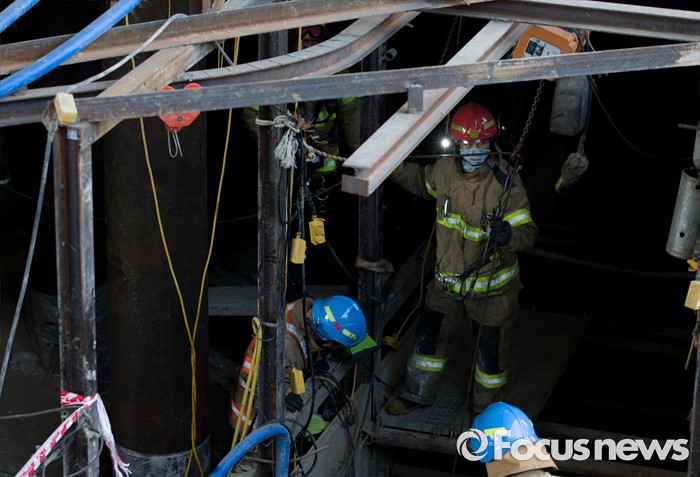 (남양주=포커스뉴스) 1일 오전 7시 20분께 경기 남양주시 진전읍 금곡리 진접석 지하철 공사현장이 붕괴되는 사고가 발생해 소방대원들이 구조작업을 하고 있다.