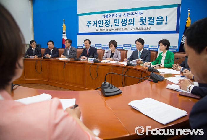 (서울=포커스뉴스) 우상호(뒷줄 왼쪽 네번째) 더불어민주당 원내대표와 김상희(뒷줄 왼쪽 다섯번째) 서민 주거 TF 단장이 1일 오전 서울 여의도 국회 원내대표실에서 서민주거TF 발족식을 하고 있다.