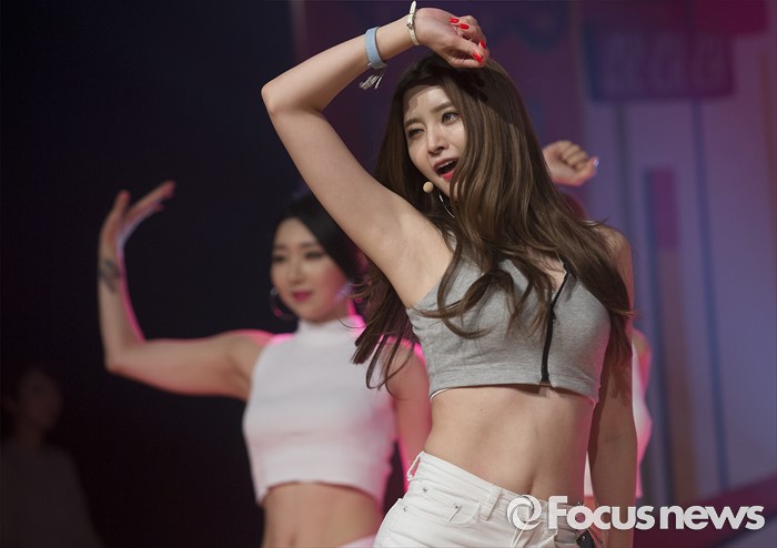 (서울=포커스뉴스) 1일 오전 서울 강남구 일지아트홀에서 열린 걸그룹 EXID의 정규 1집앨범 'STREET' 발표 쇼케이스에 참석한 멤버 정화가 신곡 무대를 선보이고 있다.