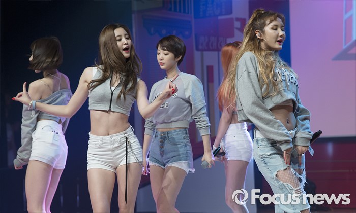(서울=포커스뉴스) 1일 오전 서울 강남구 일지아트홀에서 열린 걸그룹 EXID의 정규 1집앨범 'STREET' 발표 쇼케이스에 참석한 멤버들이 신곡무대를 선보이고 있다.
