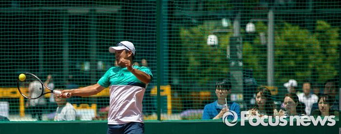 (서울=포커스뉴스) 이형택 전 테니스 국가대표가 1일 오후 서울 중구 서울광장에서 열린 '롤랑가로스(프랑스오픈) 인더시티'에서 대학생들과 스페셜 매치 시합을 하고 있다.
