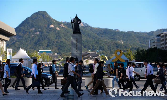 이 의원은 "(국민소득) 4만불이 되려면 일자리 창출이 우선"이라며 "일도 나눠 갖는 고용창출 면에서 (칼퇴근법이) 반드시 필요하다"고 강조했다.서울 광화문 세종로사거리를 지나는 직장인들의 출근길. 2015.09.08 오장환 기자