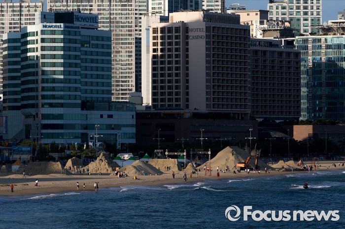 (부산=포커스뉴스) 1일 오후 여름의 시작을 알리며 개장한 부산 해운대해수욕장에 백사장을 정비하기 위한 모래들이 쌓여 있다.