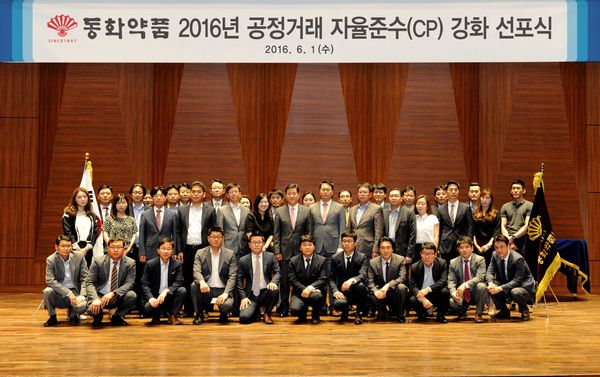 (서울=포커스뉴스) 동화약품(회장 윤도준)은 지난 1일 서울 서초구에 위치한 서울성모병원 내 성의회관에서 ‘2016년 공정거래 자율준수(Compliance Program, CP) 강화 선포식’을 개최했다고 2일 밝혔다.