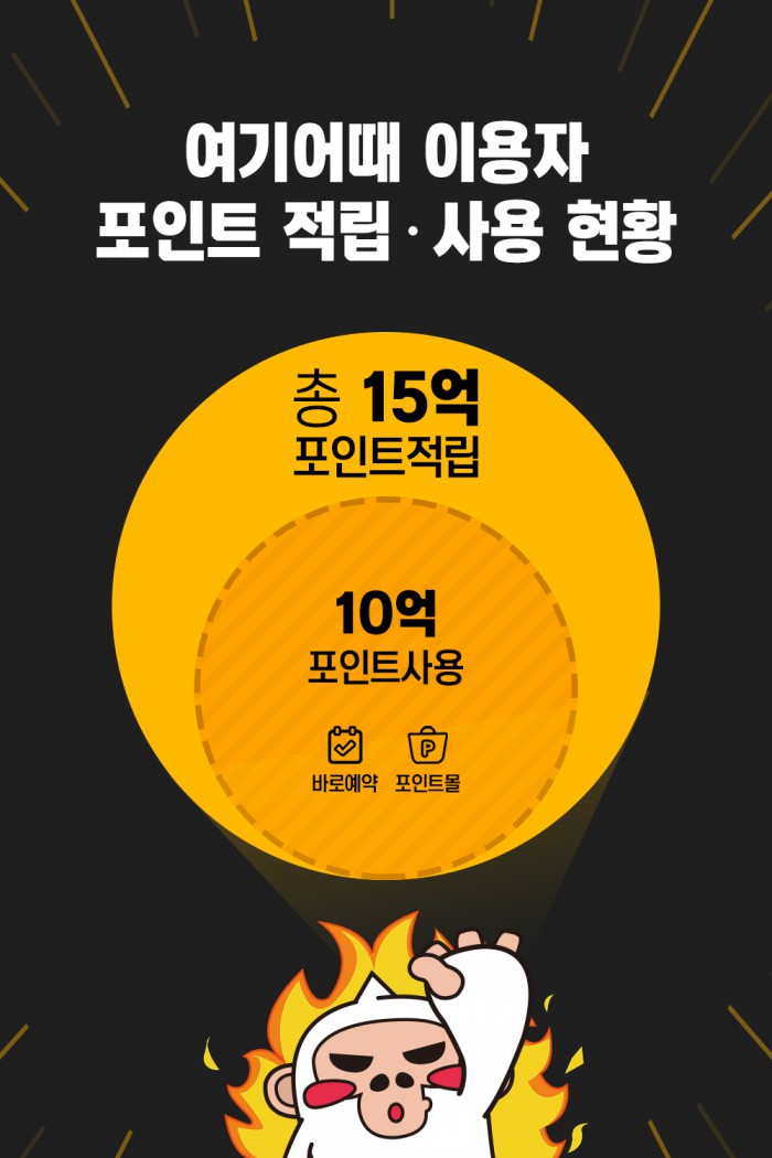 (서울=포커스뉴스) 숙박 앱 '여기어때' 이용자들이 최근 2년 동안 적립한 포인트 총 액수가 15억원을 돌파했다.