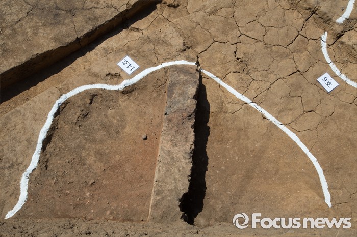 (충주=포커스뉴스) 충북 충주 칠금동 392-5번지 일대에서 백제 제철유적이 발견된 가운데 2일 현장에서 발굴조사 현장설명회가 열렸다. 사진은 제철유적 흔적 모습.