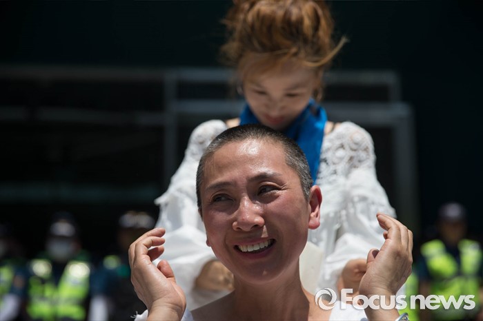 (서울=포커스뉴스) 2일 오후 서울 중구 서울시청 정문 앞에서 장애인부모연대원들이 발달장애인 정책수립을 촉구하며 삭발식을 하고 있다.