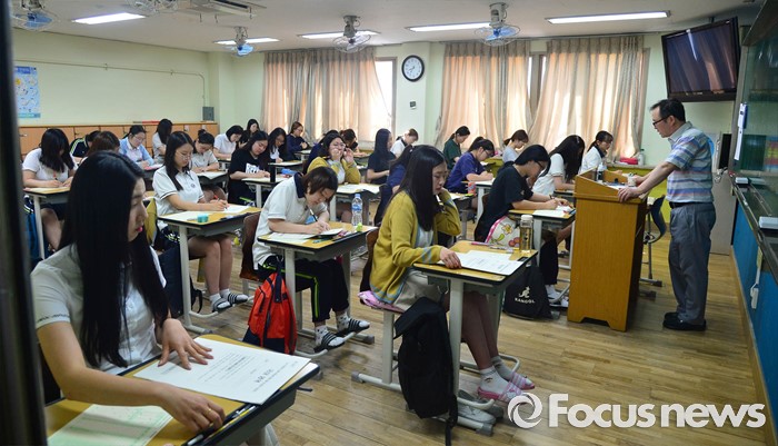 (서울=포커스뉴스) 2일 오전 서울 영등포구 여의도여자고등학교에서 고3 학생들이 2017학년도 대학수학능력시험 모의고사를 준비하고 있다.
