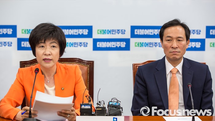 (서울=포커스뉴스) 김영주(왼쪽) 더불어민주당 가계부채TF 단장이 2일 오전 서울 여의도 국회에서 열린 '가계부채 TF 발족식'에서 모두발언 하고 있다.