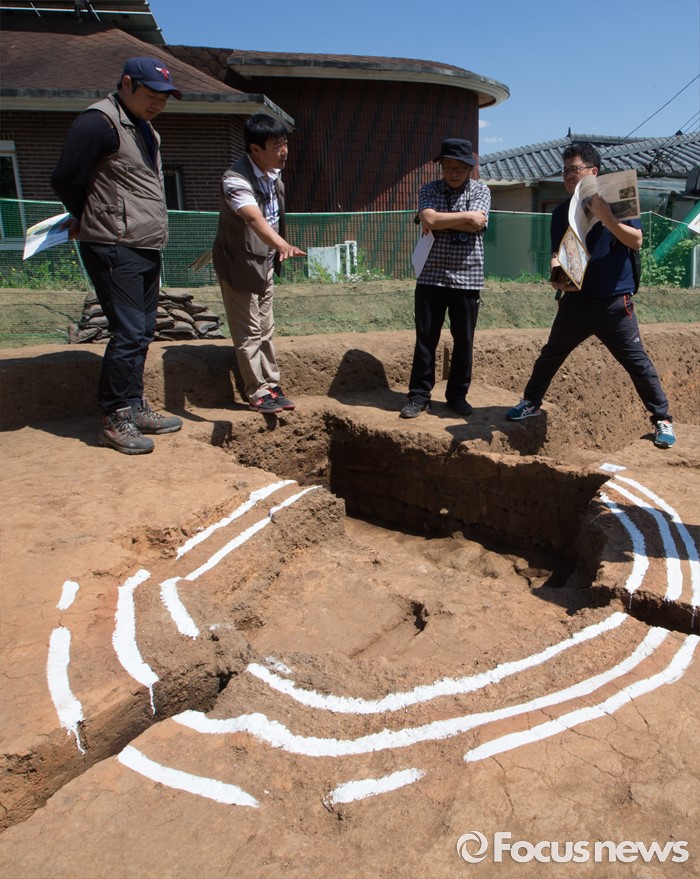 (충주=포커스뉴스) 충북 충주 칠금동 392-5번지 일대에서 백제 제철유적이 발견된 가운데 2일 현장에서 발굴조사 현장설명회가 열렸다. 학계관계자들이 제철유적을 살피고 있다.