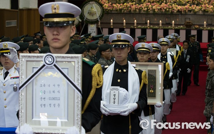 (대전=포커스뉴스) 2일 오전 대전 유성구 국립대전현충원에서 6.25 전쟁 전사자 발굴유해 3위(位) 합동안장식이 거행되고 있다.