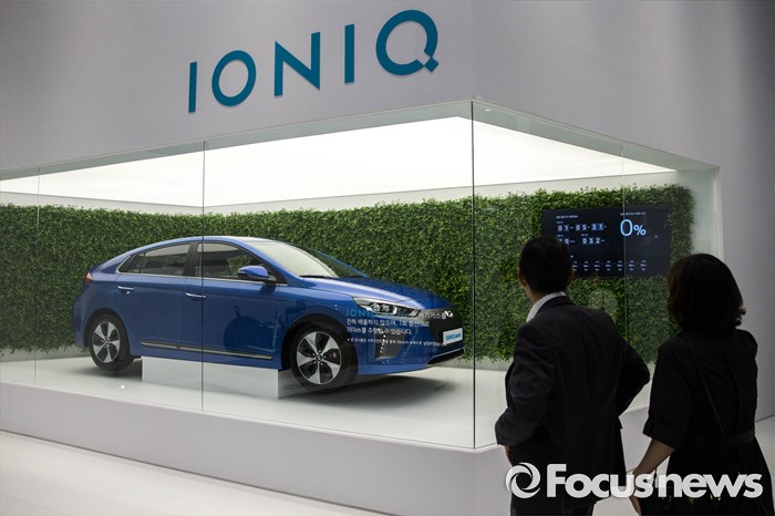 (부산=포커스뉴스) 2일 오후 부산 해운대구에 위치한 벡스코에서 열린 '2016 부산국제모터쇼'에 참석한 관계자들이 현대 'IONIQ' 부스에 마련된 차량을 관람하고 있다.