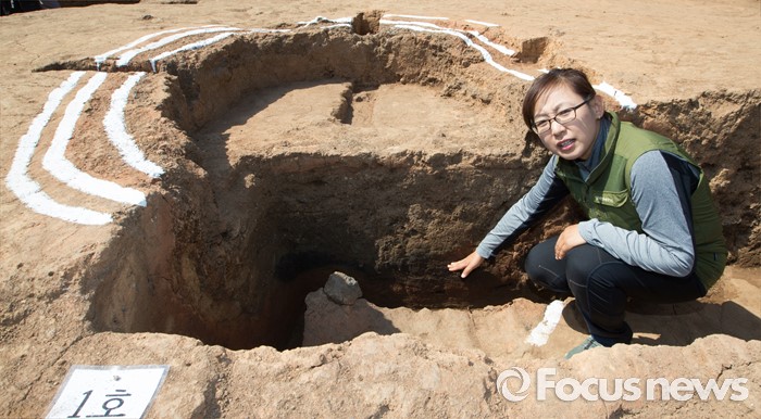 (충주=포커스뉴스) 충북 충주 칠금동 392-5번지 일대에서 백제 제철유적이 발견된 가운데 2일 현장에서 발굴조사 현장설명회가 열렸다. 발굴책임자인 한지선 국립중원문화재연구소 학예연구사가 제철유적에 대한 설명을 하고 있다.