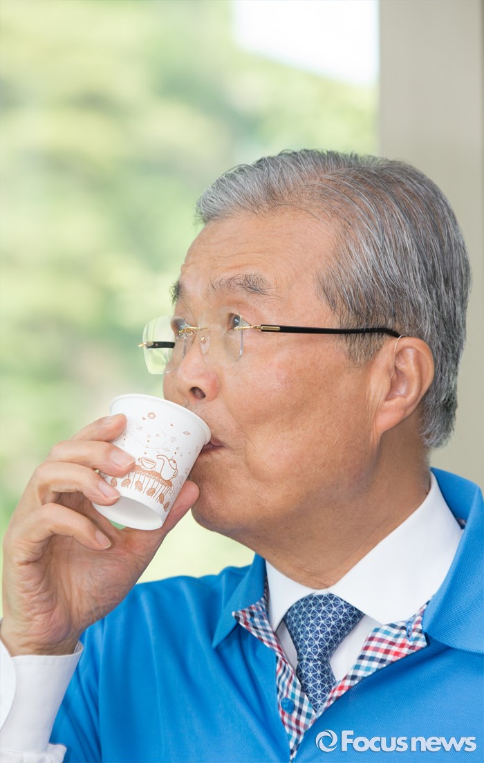 (괴산=포커스뉴스) 김종인 더불어민주당 비대위 대표가 1일 오후 충북 괴산 성불산자연휴양림에서 열린 충북도당 핵심당직자 워크숍에 참석, 총선 출마자 간담회에서 목을 축이고 있다.