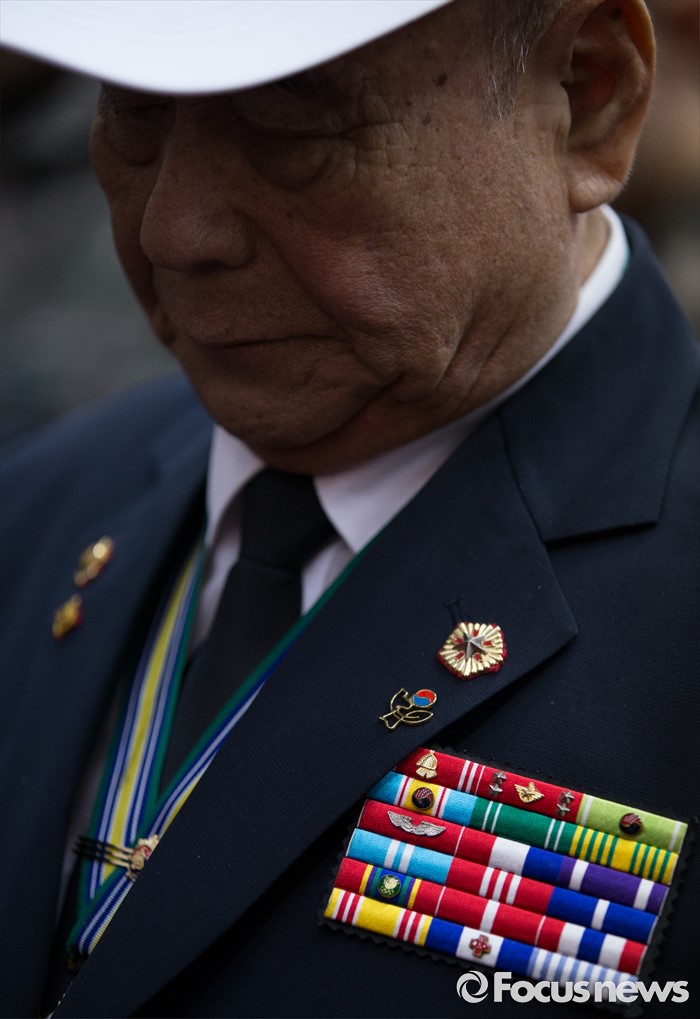 (대전=포커스뉴스) 2일 오전 대전 유성구 국립대전현충원에서 열린 6.25 전쟁 전사자 발굴유해 3위(位) 합동안장식에 참석한 참전용사가 추모하고 있다.