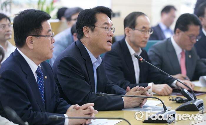 (서울=포커스뉴스) 미세먼지 대책과 관련해 현장 방문에 나선 정진석(왼쪽 두번째) 새누리당 원내대표가 1일 오후 서울 동작구 기상청 종합상황실을 방문해 모두발언을 하고 있다.