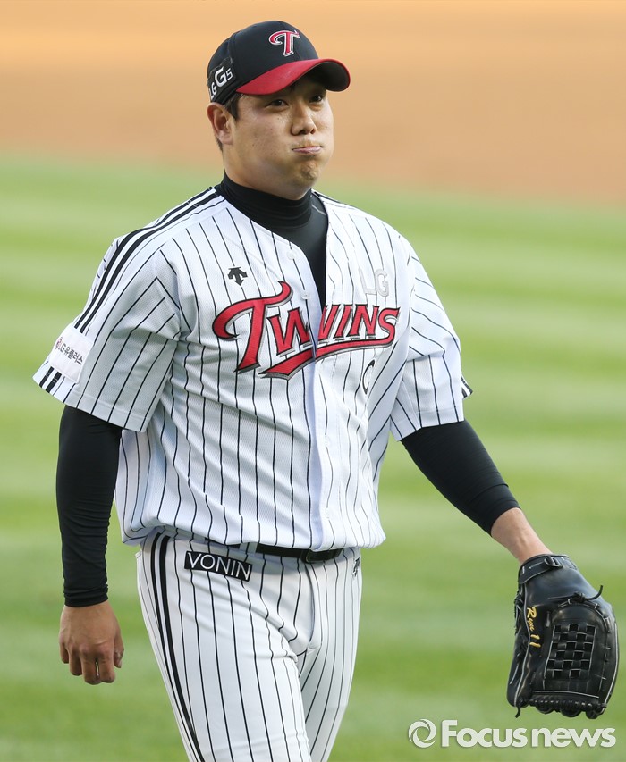 (서울=포커스뉴스) 2일 서울 잠실구장에서 열린 2016 프로야구 KIA-LG 경기에서 LG 선발투수 류제국이 1회에 1실점하고 쑥스런듯 볼풍선을 불며 덕아웃으로 들어가고 있다.