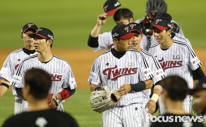 (서울=포커스뉴스) 2일 서울 잠실구장에서 열린 2016 프로야구 KIA-LG 경기에서 KIA를 물리치고 승률 5할에 복귀한 LG 선수들이 마운드를 내려오고 있다.