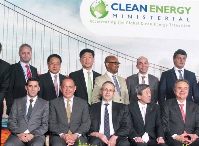 (서울=포커스뉴스) 우태희(뒷줄 왼쪽에서 세 번째) 산업통상자원부 2차관이 1일(현지시간) 미국 샌프란시스코 웨스틴 St. 프란시스호텔에서 열린 제7차 청정에너지 장관회의를 갖고 기념촬영을 하고 있다. <사진제공=산업통상자원부>