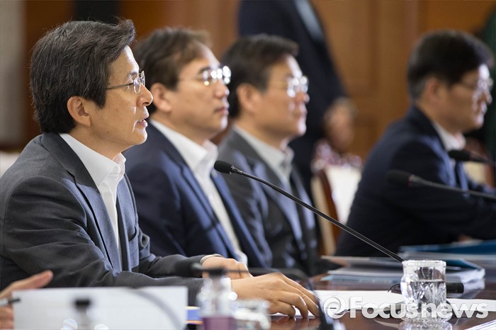 (서울=포커스뉴스) 3일 오전 서울 종로구 정부서울청사에서 열린 '미세먼지 관리특별대책 관계장관회의'에 참석한 황교안(왼쪽) 국무총리가 모두발언하고 있다.