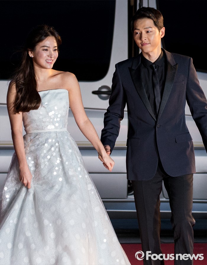 (서울=포커스뉴스) 3일 오후 서울 동대문구 경희대학교 평화의전당에서 열린 '2016 백상예술대상'에 참석한 배우 송중기-송혜교가 레드카펫을 밟고 있다.