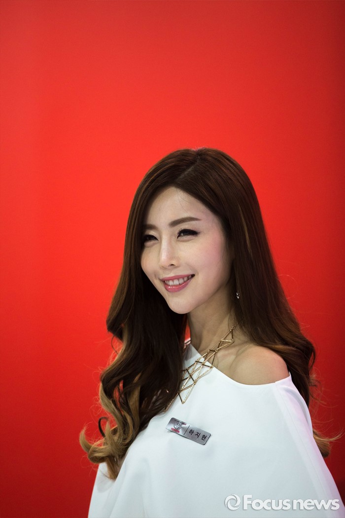 | △ 붉은 배경 속 완벽한 미모 뽐내는 레이싱걸 |