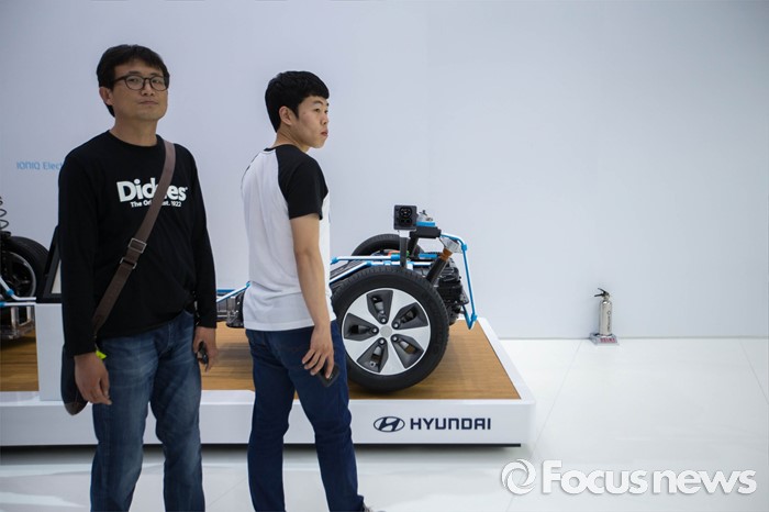 (부산=포커스뉴스) 3일 오후 부산 해운대구에 위치한 벡스코에서 열린 '2016 부산국제모터쇼'에서 시민들이 현대 부스에 마련된 친환경 하이브리드 차량 분해도를 보고 있다.